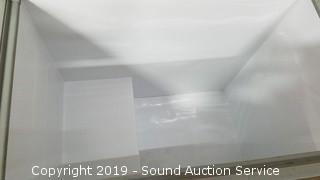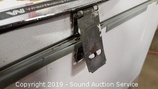 Item Description: Has a spot for a padlock. Do not know the model number. Works. 34" T x 35" W x 24" D.