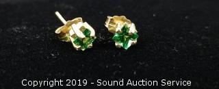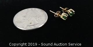 Lot #0054: 14K Yellow Gold Emerald Set Earrings