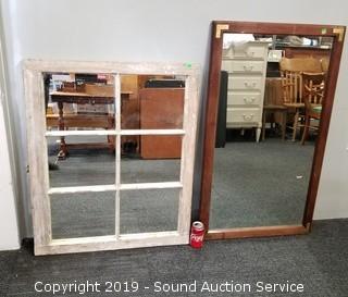 Item Description: One is an old lattice window that had the panes of glass replaced with mirrors. 36" x 30". Other is 44" x 25".