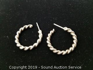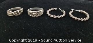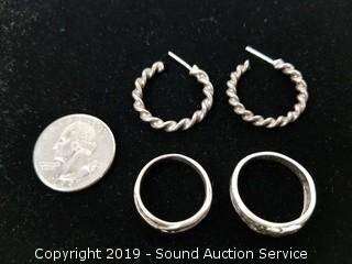 Lot #0074: 2 Sterling Rings & Hoop Earrings
