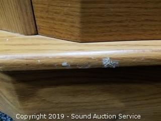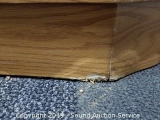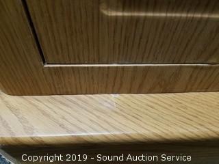 Item Description: With side cabinets. Drop corner leaf so can be placed in a corner. 39" H x 38" x 10".