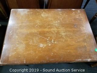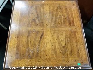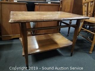 Item Description: Heritage 21" H x 26" x 26". Some scuffs and wear to the finish. Two Tier has lots of wear on the finish 20" H x 21" x 30".