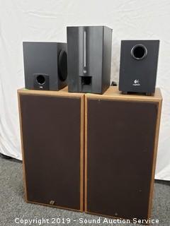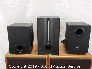 Lot #0265: Vtg. Sansui Speakers & 3 Powered Subwoofers