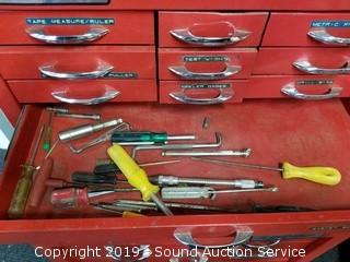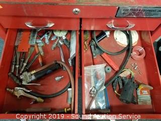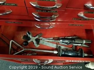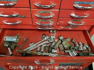 Item Description: Sockets, screwdrivers, pullers, air hammer bits, wrenches, hammers 7 more. Refer to photos for more info. 60" H x 26-1/2" x 18".