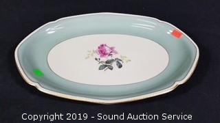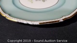 Item Description: Includes 6 tea cups, 14" serving tray, 6 saucers, 8 salad plates and 8 snack plates. 1 of the snack plates has some damage to the rim, all of the other dishes are in excellent condition.
