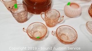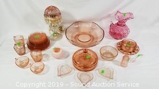 Lot #0121: 30pc Rose & Pink Art Glass Dishes