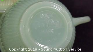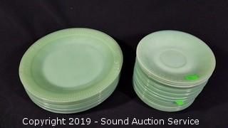Lot #0128: 37pc Anchor Hawking Fire King "Alice" Jadeite Dishes