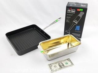 Item Description: Loaf pan, 11" griddle, and immersion blender. All are like new.