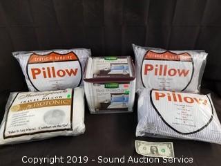 Lot #0007: 4 Travel Pillows & 8pk Depends Bed Protectors