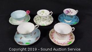 Lot #0115: 5 Bone China Tea Cups & Saucers