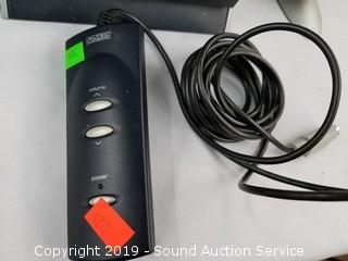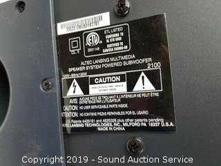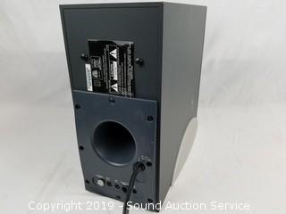 Item Description: Powered sub and 2 speakers with a wired remote. Works.