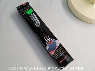 Item Description: 2 baking sheets, 11" x 17" & 12" x 20". 18 Small burlap bags, 8" x 12", Hand blender/mixer, spatulas & 10" tongs.