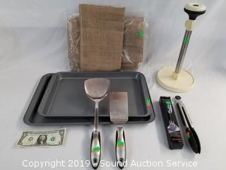 Lot #0011: Baking Sheets, Paper Towel Dispenser & Utensils