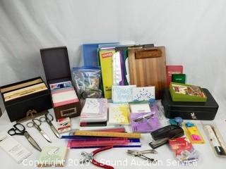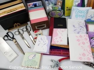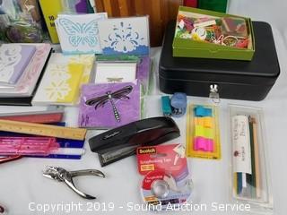 Item Description: Index cards, rulers, scissors, push pins, greeting cards, folders & more.