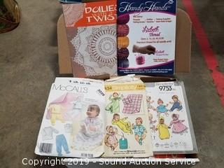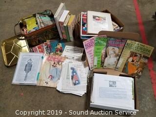 Lot #0079: Box & Tin w/ Sewing Literature & Patterns