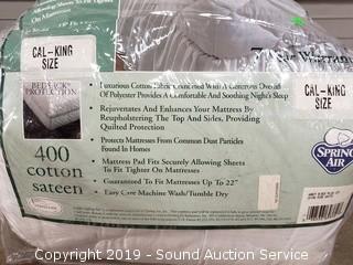 Item Description: Pillow is goose down. Mattress pad is cal king, 400 thread count sateen.