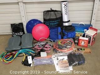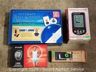 Item Description: Resistance bands, Ultimate ball and band workout, Xpodz workout mat and accessories, Monkii Bars, Tri-Stretch balance balls, Polar heart rate monitor, and more.