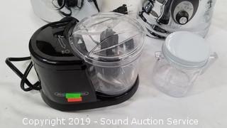 Item Description: Maletti hot chocolate maker, small food processor, and Oster blender/food processor. All work.