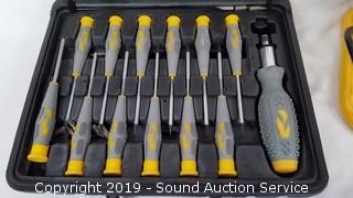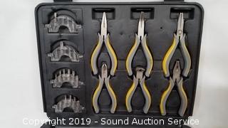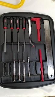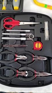 Item Description: Durabilt crafting tool set (aqua gun, X-acto knives, files and more), Workforce plier and bit set, and halogen shop light.