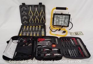 Lot #0222: Pair of Tool Sets & Halogen Shop Light