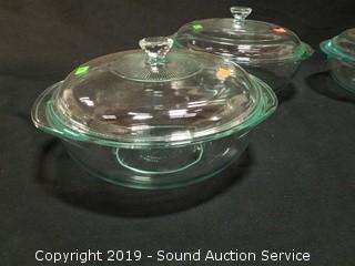 Lot #0198: Pyrex 1.5QT & 2QT Glass Baking Dishes w/Lids
