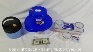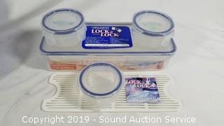 Item Description: 9pc. Lock & Lock storage container set, Aladdin soup storage container, and 2 Reynolds storage containers.
