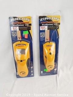 Item Description: Zircon L50 & L20 Stud Sensors for 3-1/4" and 1-1/2" studs, dual temp and mini hot glue guns, and Utilitech 2-outlet timer.