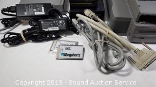 Item Description: Local bus and computer powers on but bad RTC battery & bad check sum CMOS, with colorful lines on the screen. Battery pack charger needs a power cord. Laptop computer with PCI local bus, battery packs chargers & wiring. Also comes with HP Laptop dock Series PR1006, HP laptop power packs. IBM Battery Quick Charger with batteries P/N 68G0186.