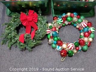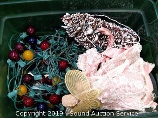 Item Description: Includes wreaths, ornaments, string lights, tree toppers and other decor. Totes are 50qt all with lids, 10" x 22" x 16".