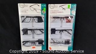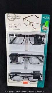 Lot #0305: 6 Pairs Design Optics +1.75 Reading Glasses