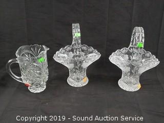 Lot #0188: Crystal & Glass Handled Baskets, Pitcher & More