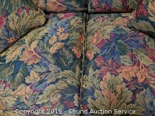 Item Description: Excellent condition. 3'ft H x 5.6'ft x 3'ft. Matches lot #6 the love seat. Comes with 2 matching throw pillows.