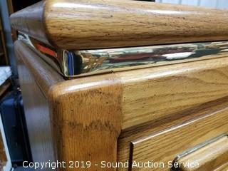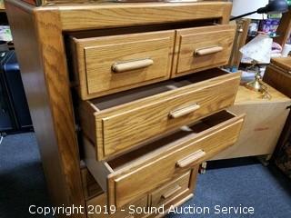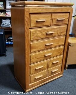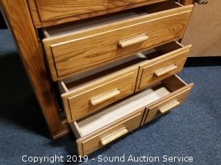 Lot #0027: Oak Finish 7-Drawer High Boy Dresser