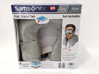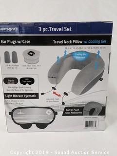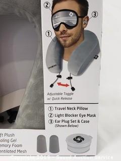 Item Description: Includes memory foam neck pillow, eye mask and ear plug set with case.