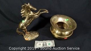 Lot #0132: Brass Spittoon & Horse Sculpture