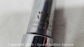 Item Description: Craftsman ratchets, True Craft sockets, Thorsen 1-1/2" socket, micrometer adjustable torque wrench, and more.