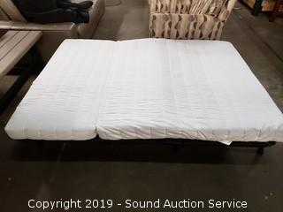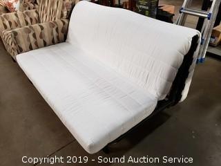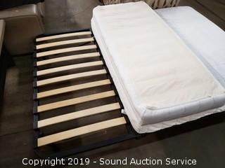 Item Description: Comes with instructions. Mattress length: 74". Mattress width: 55 1/8". Mattress thickness: 3 7/8". Removable cover. In couch form 33" H, 36" D. In good condition.