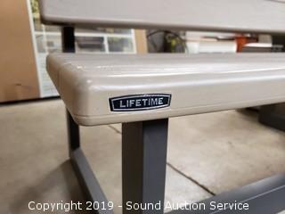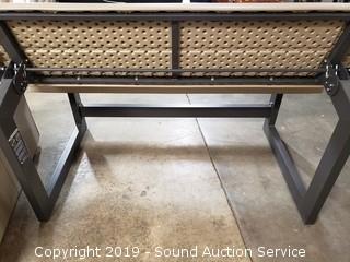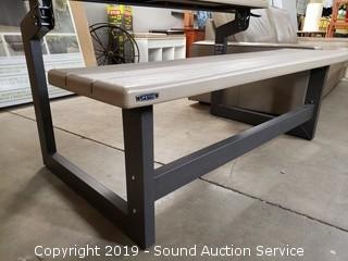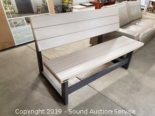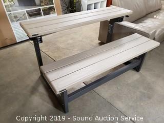 Item Description: Back of the bench folds up to be a table. In excellent condition. Approx. 35" H, 55" W, 31" D.
