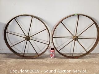 Lot #0045: Pair of Rustic Wrought Iron Tractor Wheel Spokes