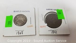 Lot #0208: Rare 1868 Shield Nickel & 1841 Large Cent