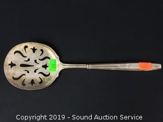 Item Description: 4 sterling spoons, sterling handle, and sterling handled slotted serving spoon. TW: 191.8 grams.