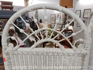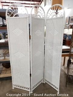 Lot #0005: White Wicker 3-Panel Privacy Screen