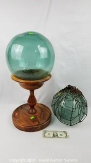 Lot #0044: 10" & 12" Japanese Glass Floats w/Stand