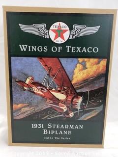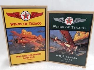 Item Description: Wings of Texaco series. 1931 Stearman Biplane 3rd in the series, and 1929 Curtiss Robin Airplane 6th in the series. Look to be new in original packaging.