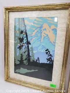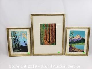 Item Description: 1 is titled "The Redwoods" artist signed by Mac Arthur, other 2 are possibly original, do not see any signatures. Approx. 9" x 12" and 13" x 16".