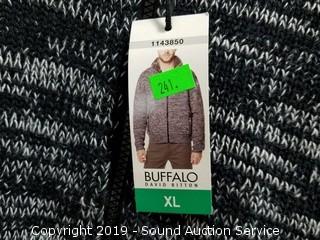 Item Description: Includes Weatherproof Vintage size medium sweater, Boston Traders size large Flannel and Buffalo size XL plush lined sweater.