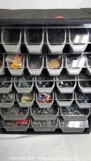 Item Description: Hardware organizer is full of various hardware, approx. 17" x 16" x 7". Rolling organizer is approx. 24" H, 15" x 13".