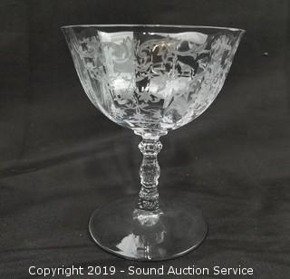 Item Description: Includes 13 saucers, 8 tea cups and 23 low champagne glasses (a couple chips).
