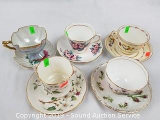 Lot #0196: 5 Fine China Tea Cups & Saucers