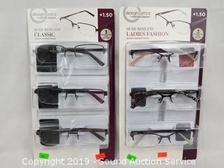Lot #0189: 6 Pairs Design Optics +1.5 Reading Glasses